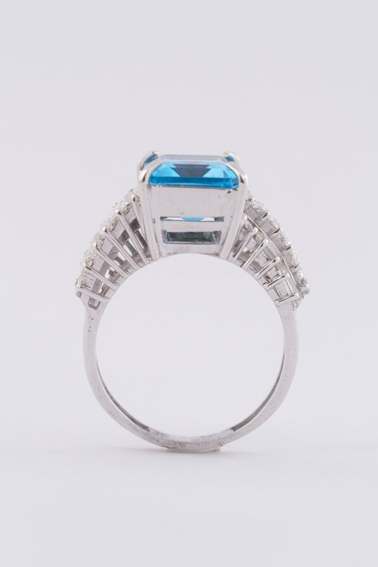 Wit gouden ring met een topaas en diamanten