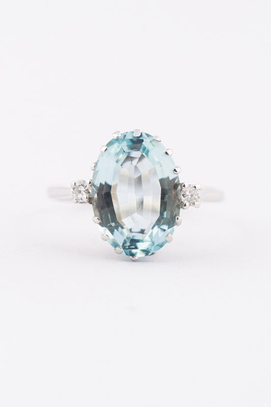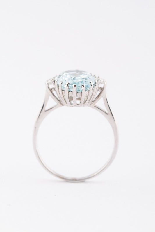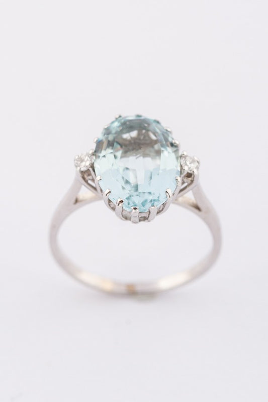 Wit gouden ring met natuurlijke aquamarijn en briljanten