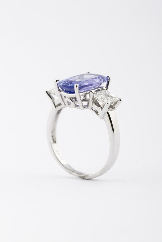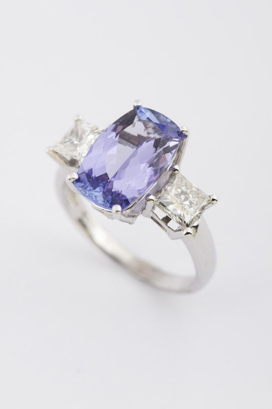 Wit gouden ring met tanzaniet en prinses geslepen briljanten