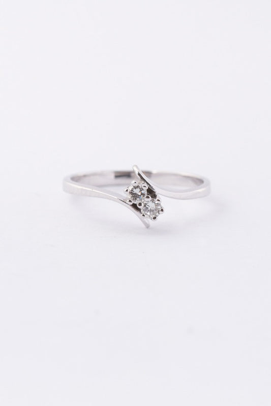 Wit gouden slag ring met 2 briljanten. Totaal ca. o.12 ct.