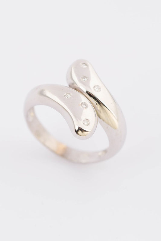 18 krt wit gouden slag ring met 6 briljanten.