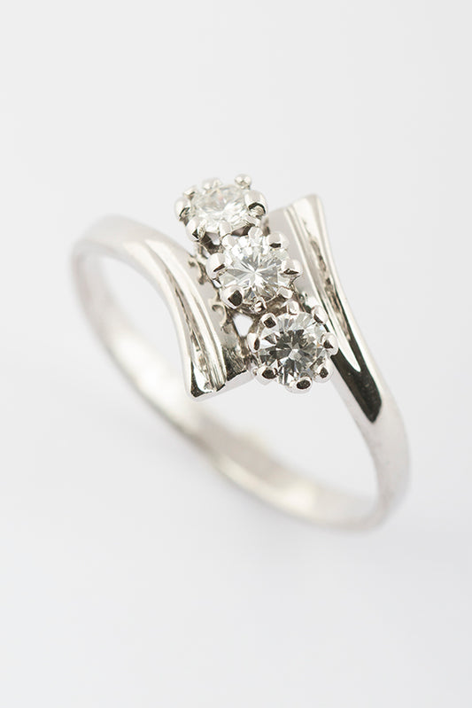 14 krt. wit gouden slagring met 3 briljanten. Totaal ca. 0.45 ct.