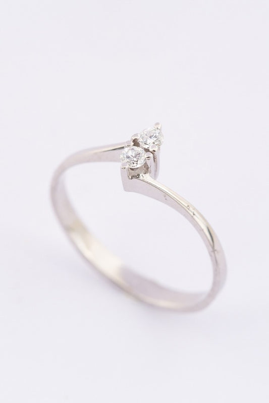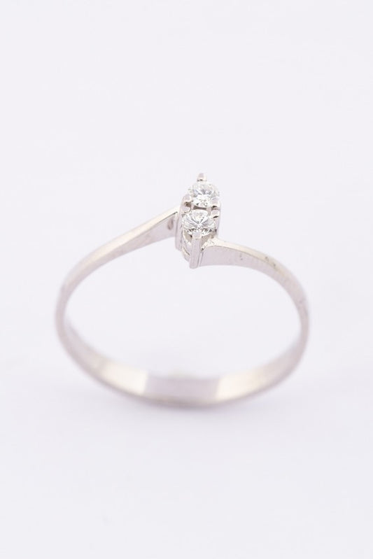 14 krt. wit gouden slagring met 2 briljanten. Totaal ca. 0.10 ct.
