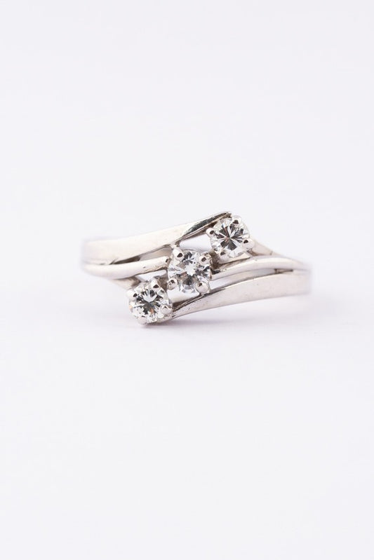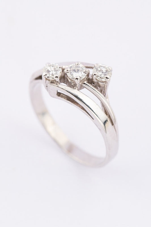 14 krt. wit gouden slagring met 3 briljanten. Totaal ca. 0.40 ct.
