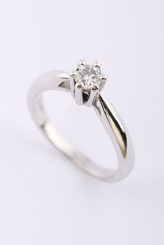 14 krt. wit gouden solitair ring met een briljant van ca. 0.20 ct. (SI).
