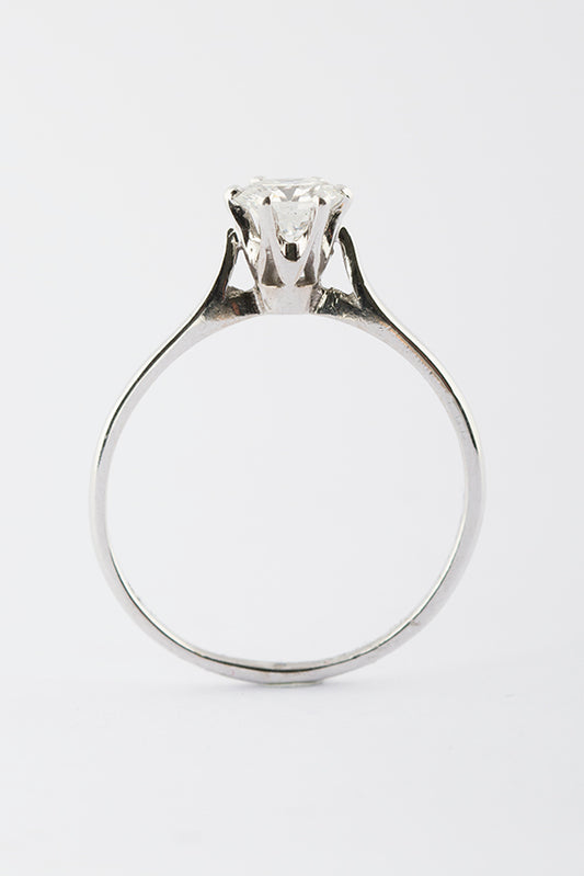 14 krt. wit gouden solitair ring met een briljant van 0.58 ct. Kwaliteit: VS2. Kleur: E. Met HRD Antwerpen certificaat.