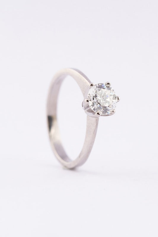 Wit gouden solitair ring met briljant (1.01 ct.)