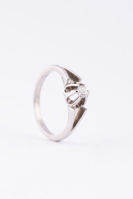 14 krt. wit gouden solitair ring met een briljant van 0.14 ct.