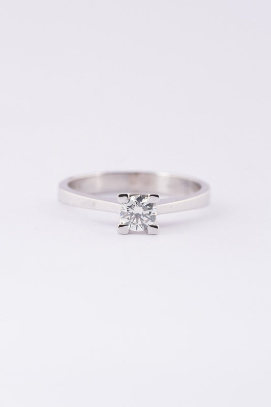 14 krt. wit gouden solitair ring met een briljant van ca. 0.38 ct.