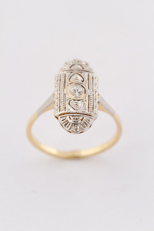 Wit/geel gouden Art Deco ring met een briljant van ca. 0.035 ct.