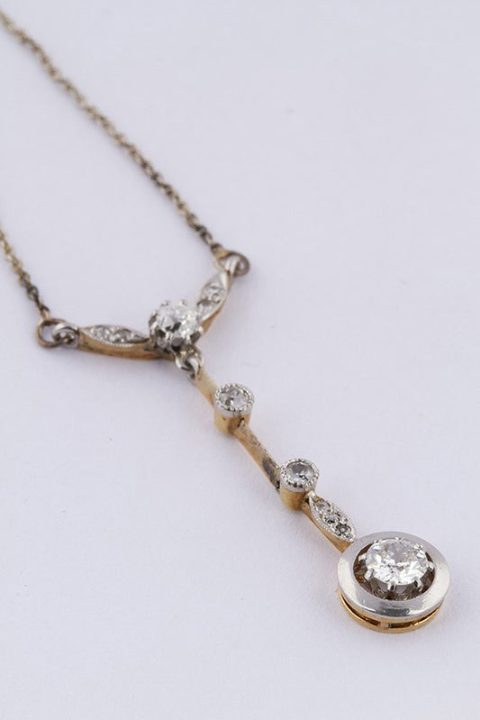 Wit/geel gouden Art Nouveau hanger met briljant en diamant