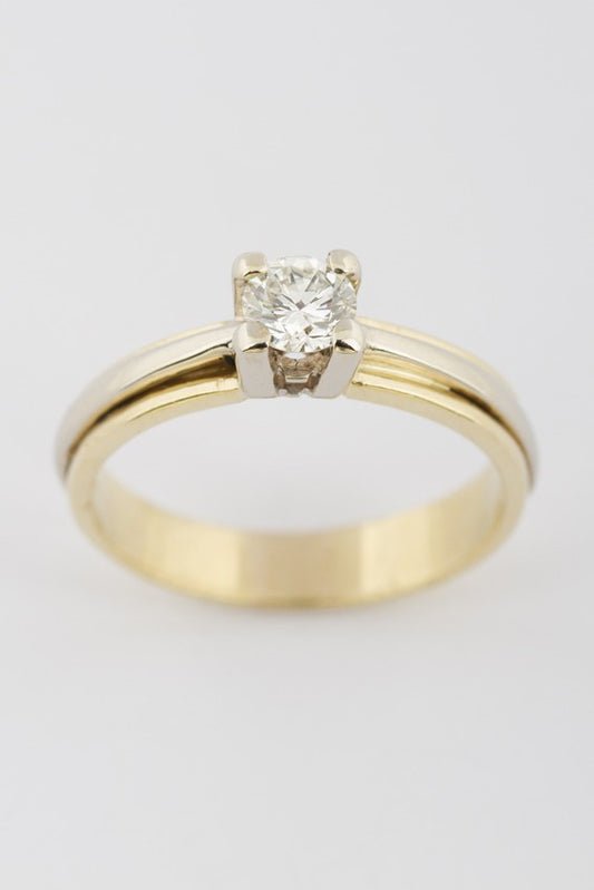 Wit/geel gouden solitair ring met briljant 0.61 ct.