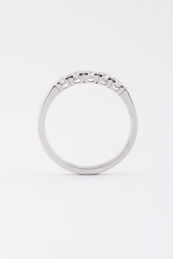 14 krt. wit gouden rij ring met 5 briljanten. Totaal 0.40 ct.