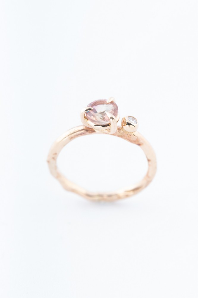 Ring met toermalijn en briljant. Gehalte: 0.566 dzn. AU (Bwg).