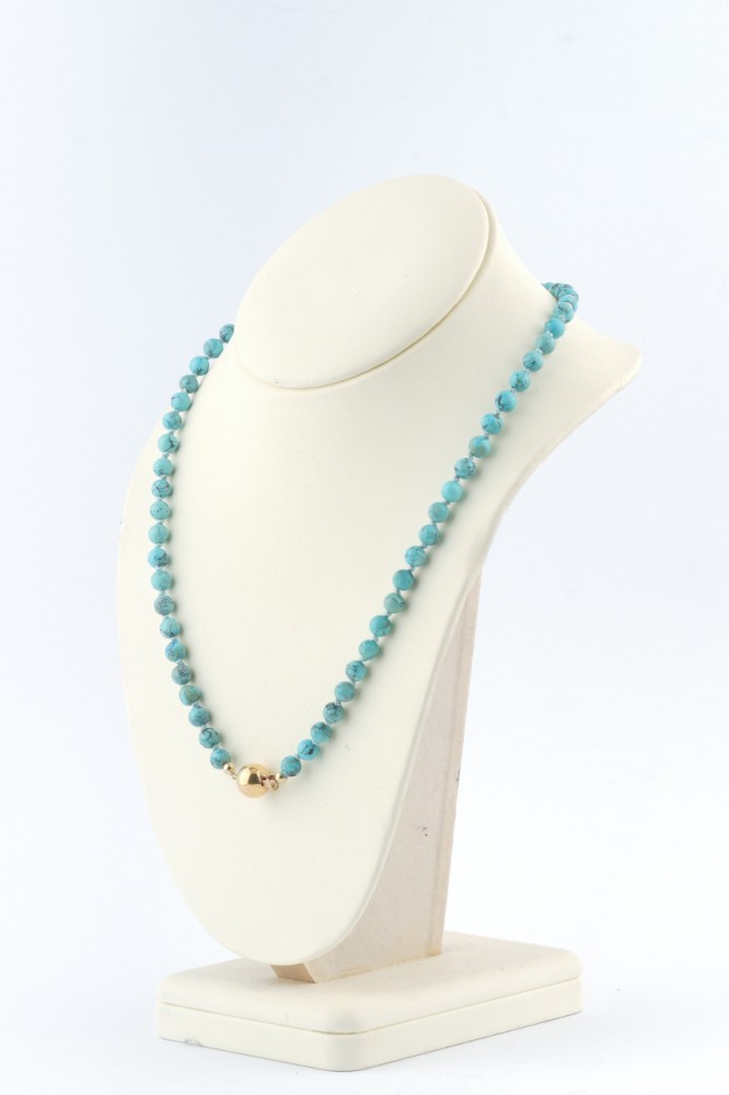 Turkoois collier aan 14 krt. gouden bolsluiting.