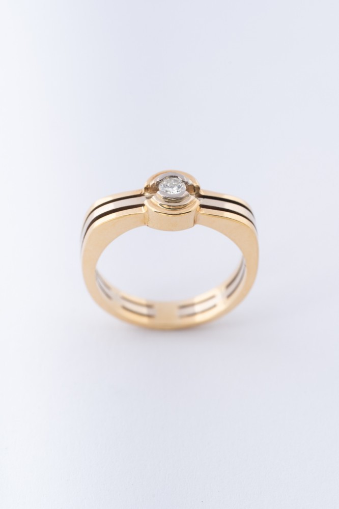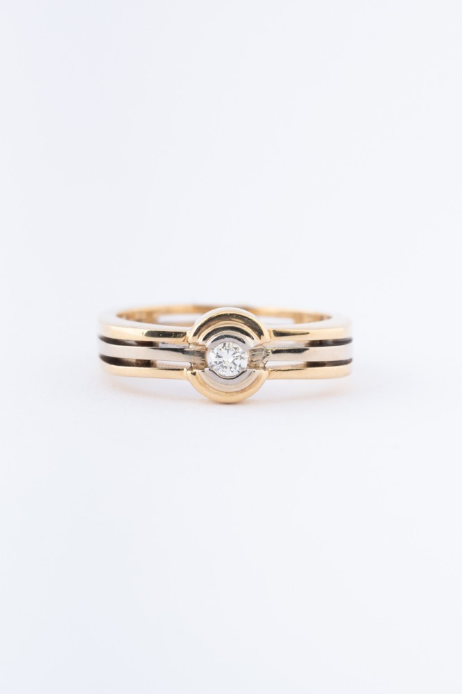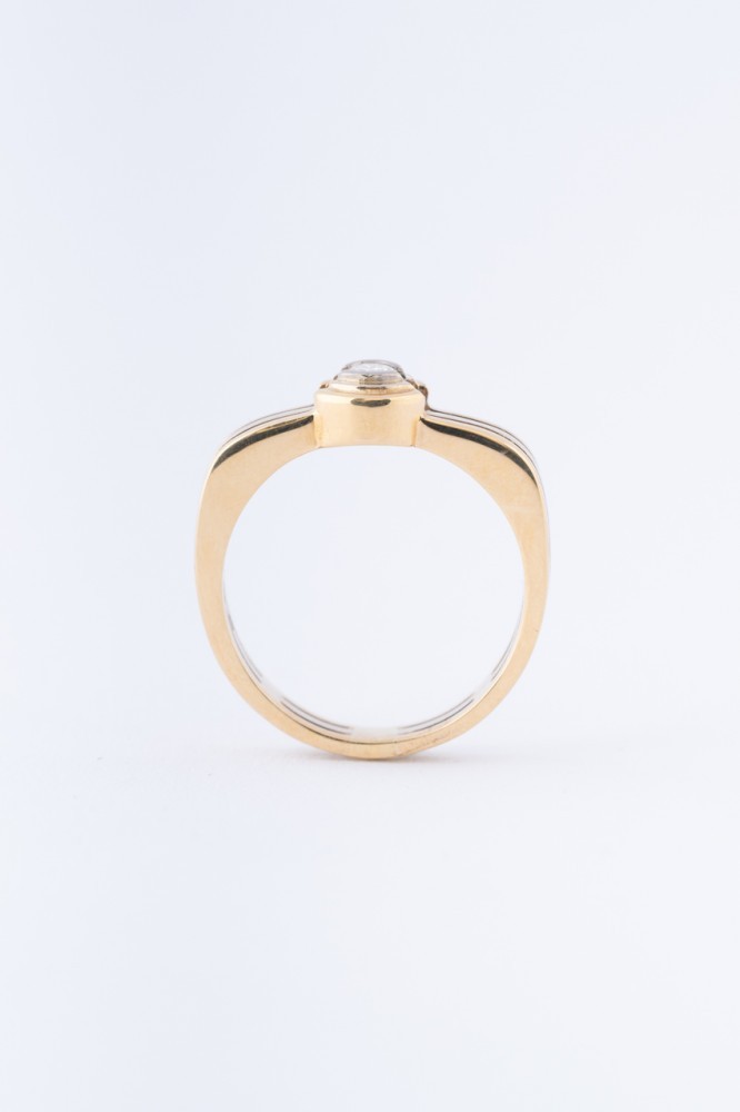 18 krt. wit geel gouden ring met een briljant van ca. 0.10 ct.