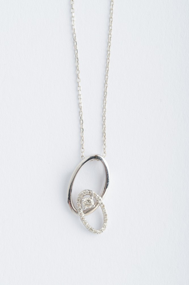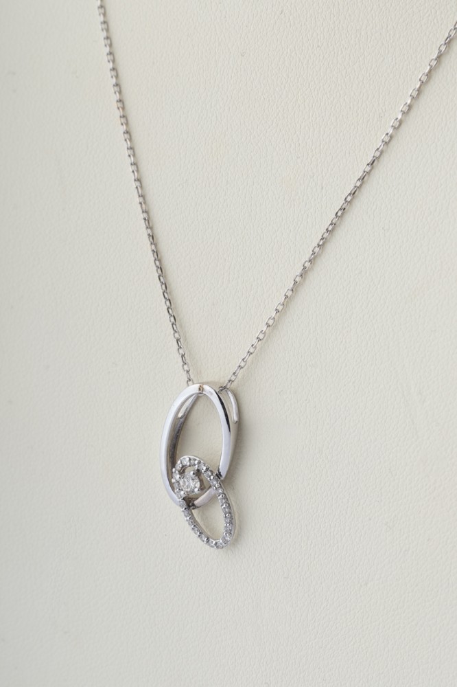 14 krt. wit gouden hanger met 23 briljanten (totaal 0.22 ct.) aan 14 krt. wit gouden anker collier.