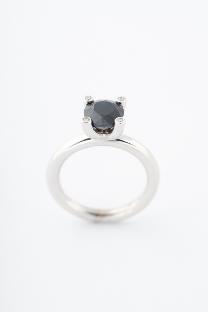 14 krt. wit gouden ring met saffier en 4 briljanten van het merk Bron.